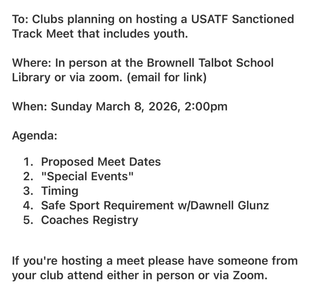 2026 USATF Nebraska Track and Field planning meeting – March 8th, 20267 BY Matt Scott March 4, 2026Request Zoom link by emailing communications@nebraska.usatf.org