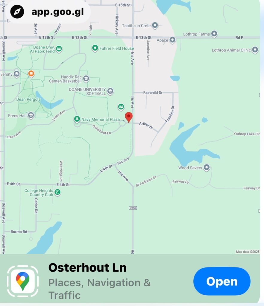 Here is the updated schedule for the Nebraska XC Festival, including the address for the start and finish line on the Doane University campus, located at Iris Avenue and Arthur Drive in Crete.